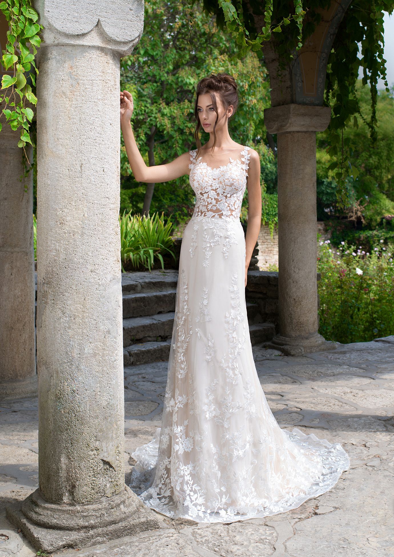 Rochie de mireasă Milano “semi-peștele” cu vîrful corsetului dantelat, spatele decorată, transformându-se într-o trenă luxoasă și strălucitoare , va crea o imagine incredibilă și in acelasi timpe seducatoare a miresei.